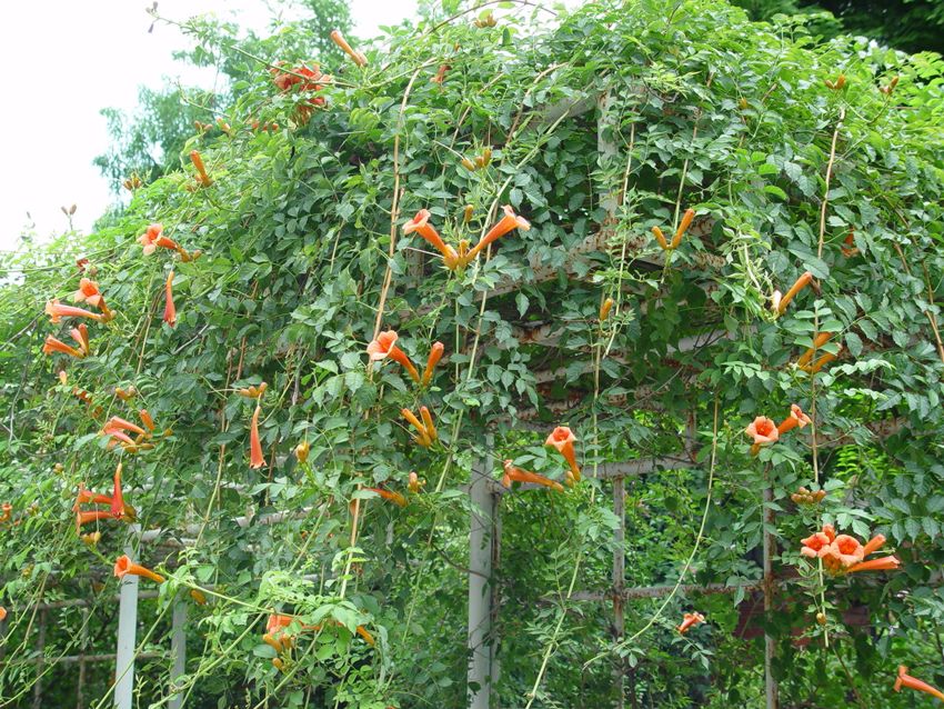 隨著城鎮建設的迅猛發展,發展立體綠化對增加綠化面積,美化環境,有著十分重要的意義。凌霄別稱紫葳、五爪龍、紅花倒水蓮、上樹蜈蚣、白狗腸、吊墻花等。凌霄為奇數羽狀復葉,對生,小葉7片—11片,卵形至卵狀披針形,長4厘米—9厘米,寬2厘米—4厘米,葉面光滑;花序圓錐狀,花大、稀疏、漏斗狀,鮮紅色;老干灰白色,嫩枝陽面紫紅色,枝干上著生很多氣根,借此攀援生長;6月—9月開花,花期長,花大色艷,是較好的重直綠化植物。凌霄花性微寒,根苦涼,可入藥,有、通經、散瘀、消腫作用。凌霄適應性強,要求排水良好的沙質土栽培,可用扦插、壓條、分株、播種法繁殖。